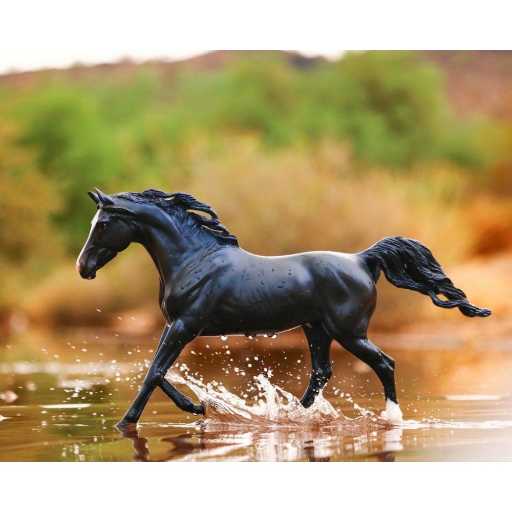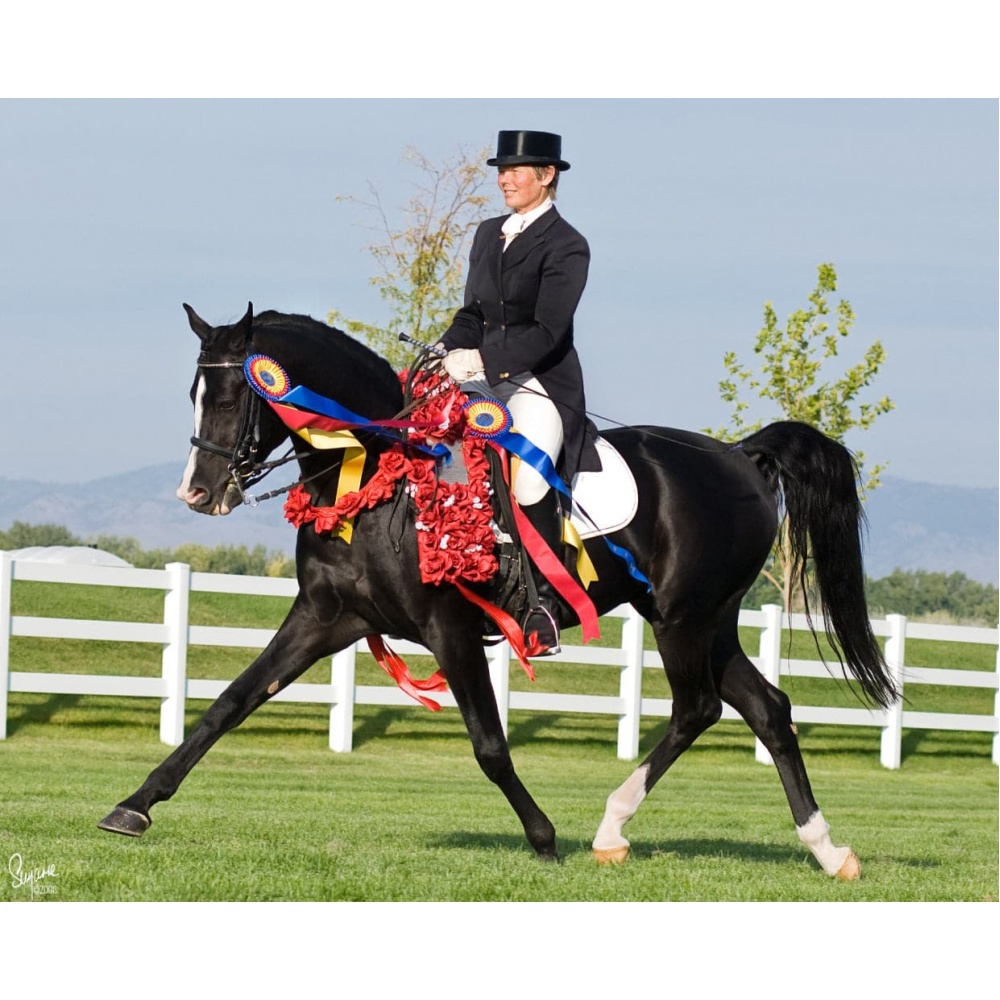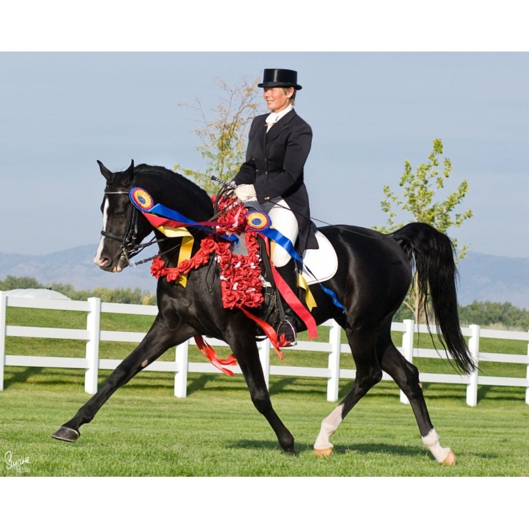 Араби - одна з найпопулярніших порід, і ебенова масть і білі мітки цього приголомшливого чорного жеребця захоплюють дух! Чемпіон арабської породи жеребець KB Omega Fahim++++// отримав нагороду Legion of Masters Excellence від Arabian Horse Association (AHA), набравши 300 або більше очок у руках та продуктивності. Неймовірно різносторонній, Омега заробив свої очки у виїздці, руках, витривалості, спортивному кінному шоу та спортивному коні під сідлом.