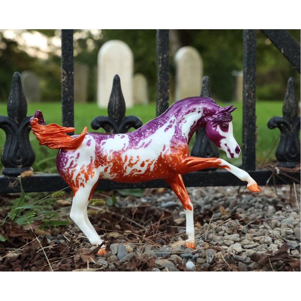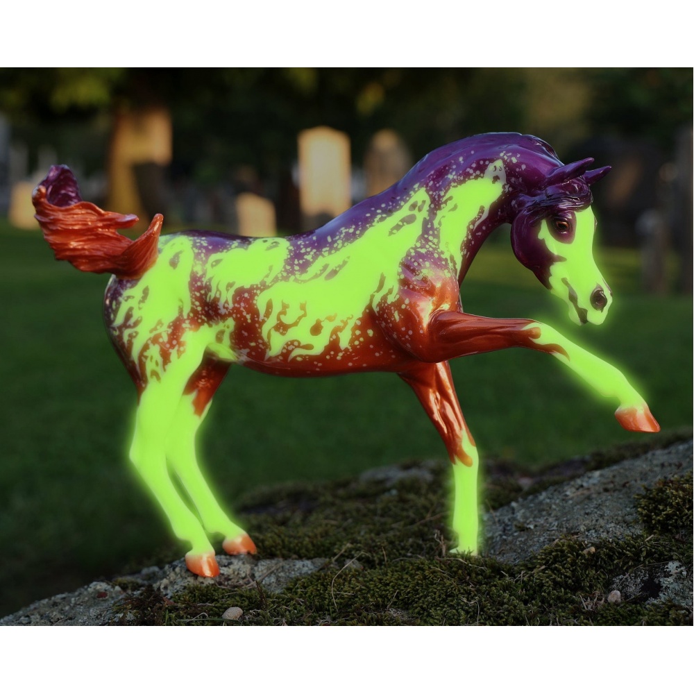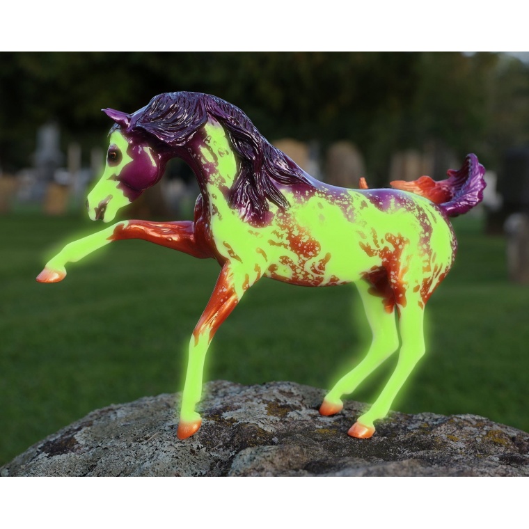 Світиться у темряві! Розмір: 32×22 cm. Масштаб: 1:9. У цей переддень Дня всіх святих щось льодяче вислизнуло з тіней. Вийшовши з темряви на місячне світло, Спектр є чудовим видовищем, що зачаровує. Розроблений художницею Лорен Хоффер, цей жеребець покритий моторошними привидами з розкритими в безмовних криках ротами.