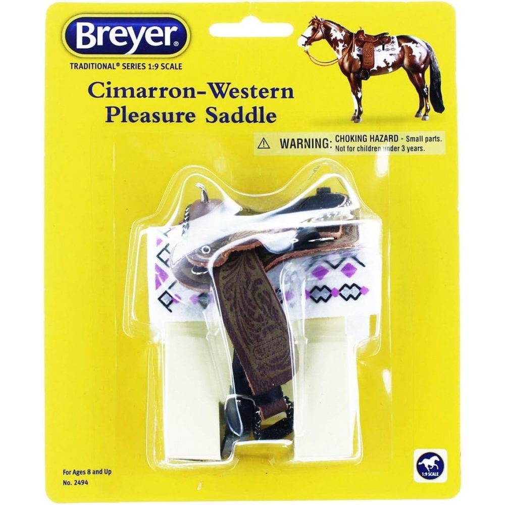 Сідло для коней розміру traditional (масштаб: 1:9). Сідло Cimarron Western Pleasure – класичне сідло Western, готове до будь-яких видів верхової їзди у стилі Western. Воно красиво прикрашене рельєфними спідницями і поставляється з ромбоподібним пітником. Це сідло ідеально поєднується із вуздечкою Western Show Bridle для повного комплекту сідла Western! Кінь, вершник та вуздечка продаються окремо.