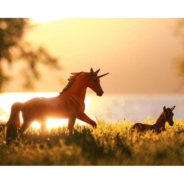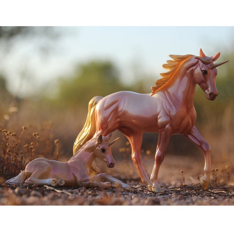 Масштаб: 1:9. Сяючи світлом нового світанку, кобила-єдиноріг Церера та її нове лоша Мінерва вітають день. Церера не спускає очей зі своєї дорогоцінної сонної кобилки, яка виглядає надто щасливою, щоб залишатися у спокої. У Церери рум'яна блискуча металева шерсть із рожевими та золотими відтінками. Мила Мінерва - золотиста паломіно з рожевими вкрапленнями. У обох золоті роги і копита, що завершують їхній чарівний вигляд.