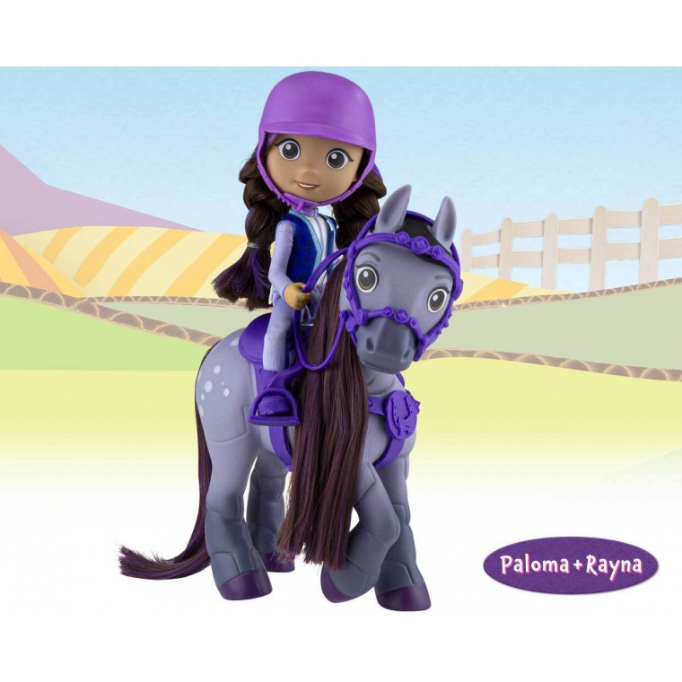 У набір входять: 1 рухлива наїзниця, 1 поні зі спорядженням для верхової їзди, 1 шолом для верхової їзди, 1 зручний костюм, 1 щітка для догляду за поні та 1 аркуш з наклейками. Розмір упаковки: 28 х 25 х 9 см. Висота поні: 16 см, висота наїзниці: 15 см.