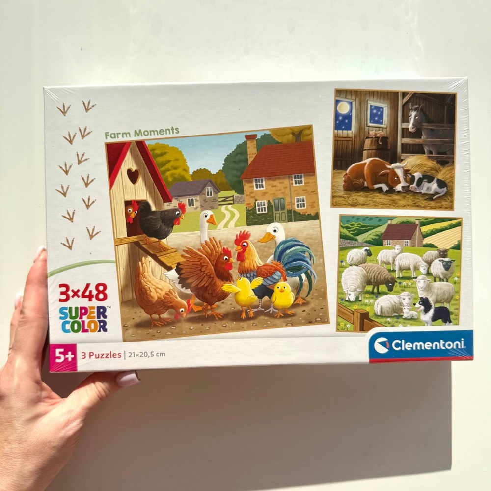 Пазли Clementoni. У цій коробці три пазли «Ферма по 48 деталей, розмір кожного: 21 х 21 см