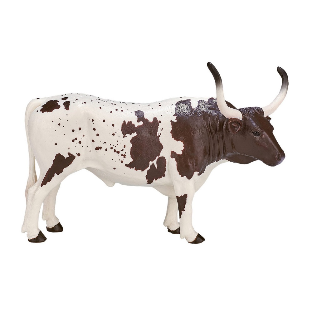 Розмір: 13 х 8,5 см. Техаський лонгхорн – досить рідкісна порода, оскільки він з'явився природним шляхом, а не в результаті селекції людини, внаслідок змішування диких іспанських корів із худобою поселенців, що пасуться на вільному випасі. Напівдикий техаський лонгхорн був визнаний окремою породою великої рогатої худоби приблизно під час Громадянської війни і користувався все більшою популярністю до початку XX століття. Коли скотарі почали огороджуватися на своїх пасовищах, і площі відкритих випасів занепали, техаський лонгхорн втратив популярність серед інших порід.