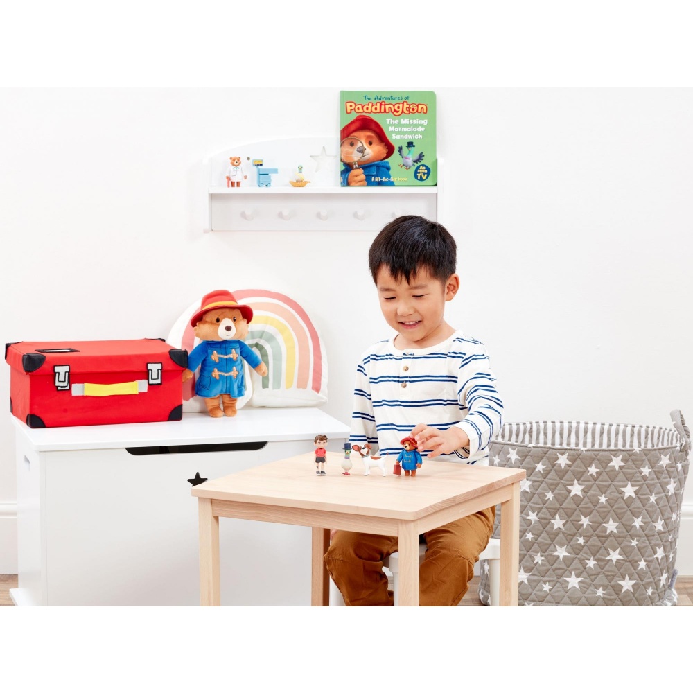 Пробудьте уяву малюків і надихніть їх на створення власних пригод Паддінгтона, натхнених серіалом «Пригоди Паддінгтона», за допомогою цього захоплюючого набору фігурок від Rainbow Designs. У набір входять Паддінгтон в його знаменитому синьому пальто і червоній шапці, його друг Джонатан Браун, Піджонтон і собака Матео на прізвисько Лакі. Фігурки Паддінгтона та Джонатана мають рухливі руки, а всі персонажі ідеально підходять за розміром для маленьких рук. Фігурки також сумісні за розміром з усіма ігровими наборами «Пригоди Паддінгтона», що сприяє веселій та творчій грі з улюбленим персонажем телесеріалу. Підходить для дітей віком від 3 років.