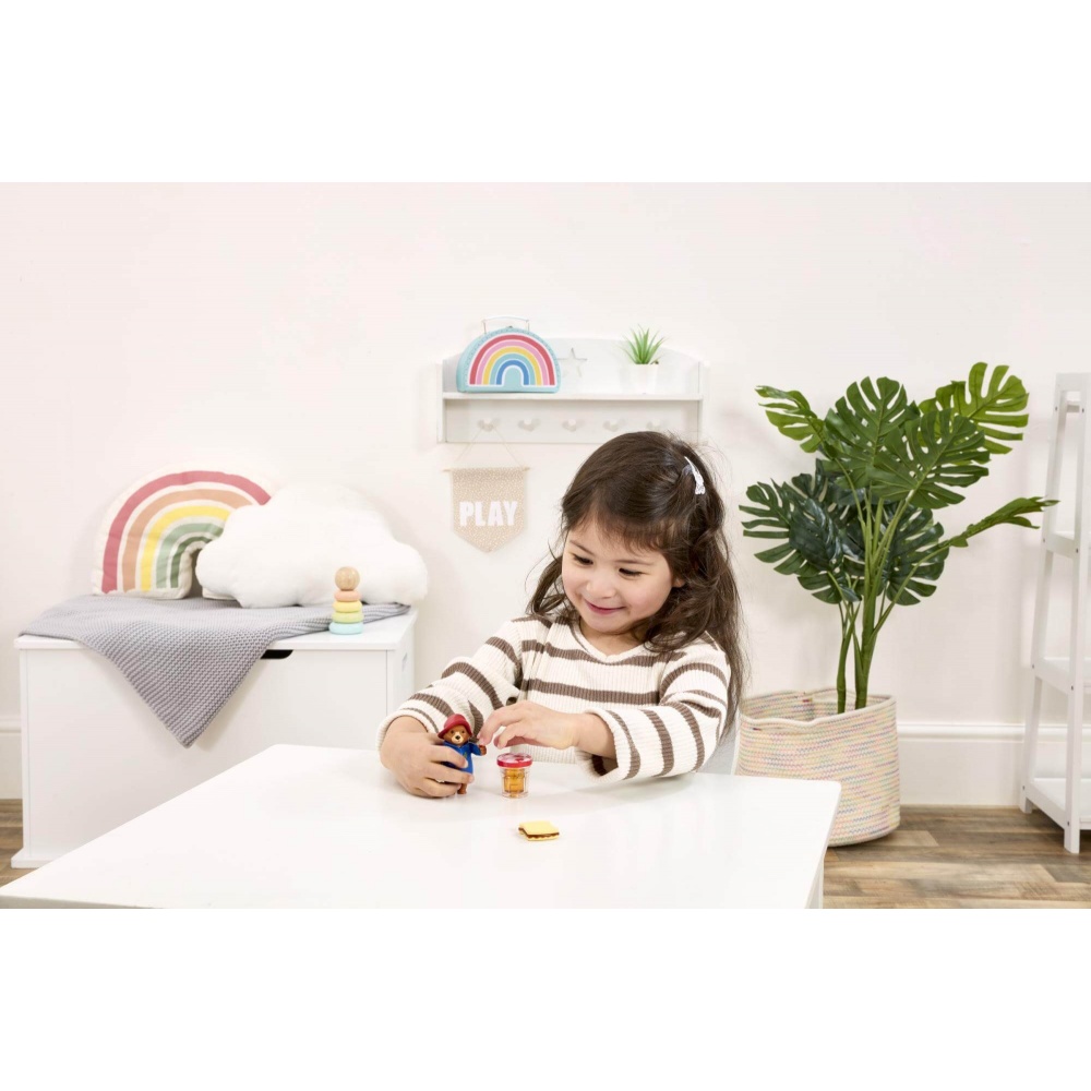 Розміри упаковки: 16 х 4,5 х 14 см. Висота Паддінгтона - 7,5 см. Рухливі руки та голова. Час для солодкого частування! Познайомте свою дитину із чарівним світом ведмежа Паддінгтона за допомогою захоплюючого ігрового набору «Мармеладні частування Паддінгтона». Натхнений відзначеним нагородами телесеріалом «Пригоди Паддінгтона», цей чудовий набір із трьох предметів, в якому зображено всіма улюблене ведмежа зі баночкою свого улюбленого мармеладу та бутербродом з мармеладом, ідеально підходить для маленьких ручок та сприяє годинникам творчої гри. Сумісний з усіма іншими ігровими наборами Паддінгтона, це ідеальний подарунок для розвитку творчого рольового мислення та вміння розповідати історії.
