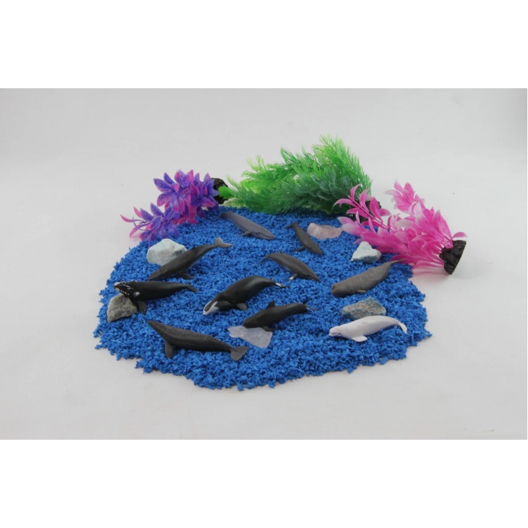 Кіти – найбільші серед ссавців. Наприклад, блакитний кит (є в наборі) в середньому зростає до 25 м завдовжки при вазі 90-120 тонн. Найменший представник сімейства – білуха. Дорослі особини досягають 6 метрів при вазі 2 тонни.