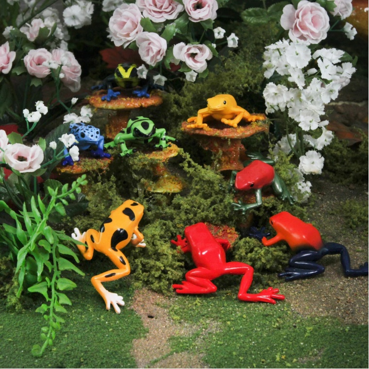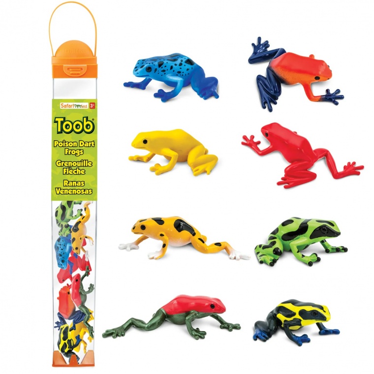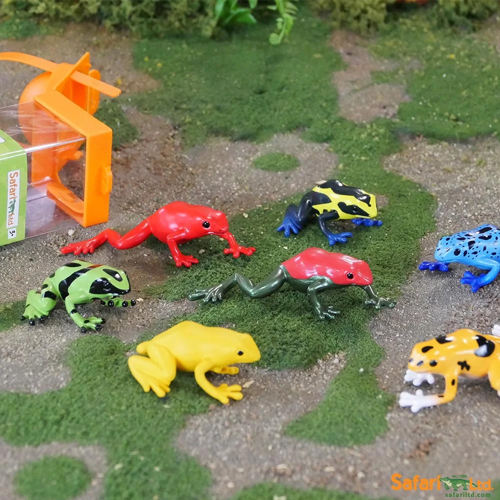 Цей набір містить кілька різновидів отруйних жаб, включаючи зелену з чорним, синю з чорним, жовту з чорним, золоту з чорним, червону з синім, золоту, червону та отруйну жабу Сира.