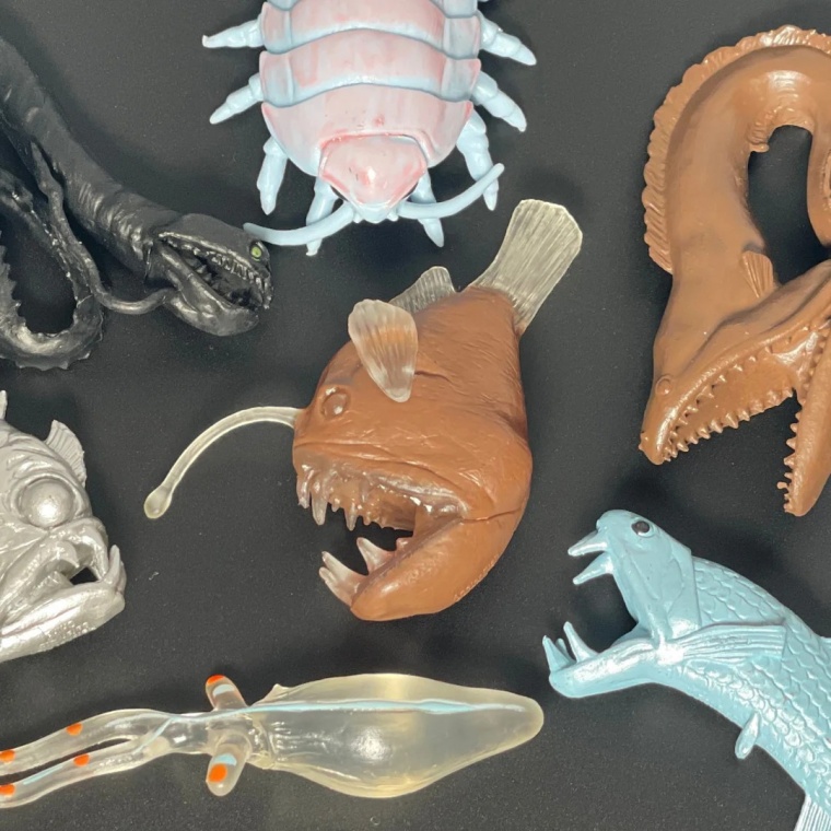Набір включає 7 фігурок глибоководних істот: вугор-більшерот, гігантський ізопод, скляний кальмар, вудильник, риба-топірка, хауліод звичайний, тихоокеанська риба-гадюка, які стануть відмінним доповненням для сюжетних ігор. Завдяки грі з ними, малюки навчаться розуміти важливість живої природи та необхідності її збереження.