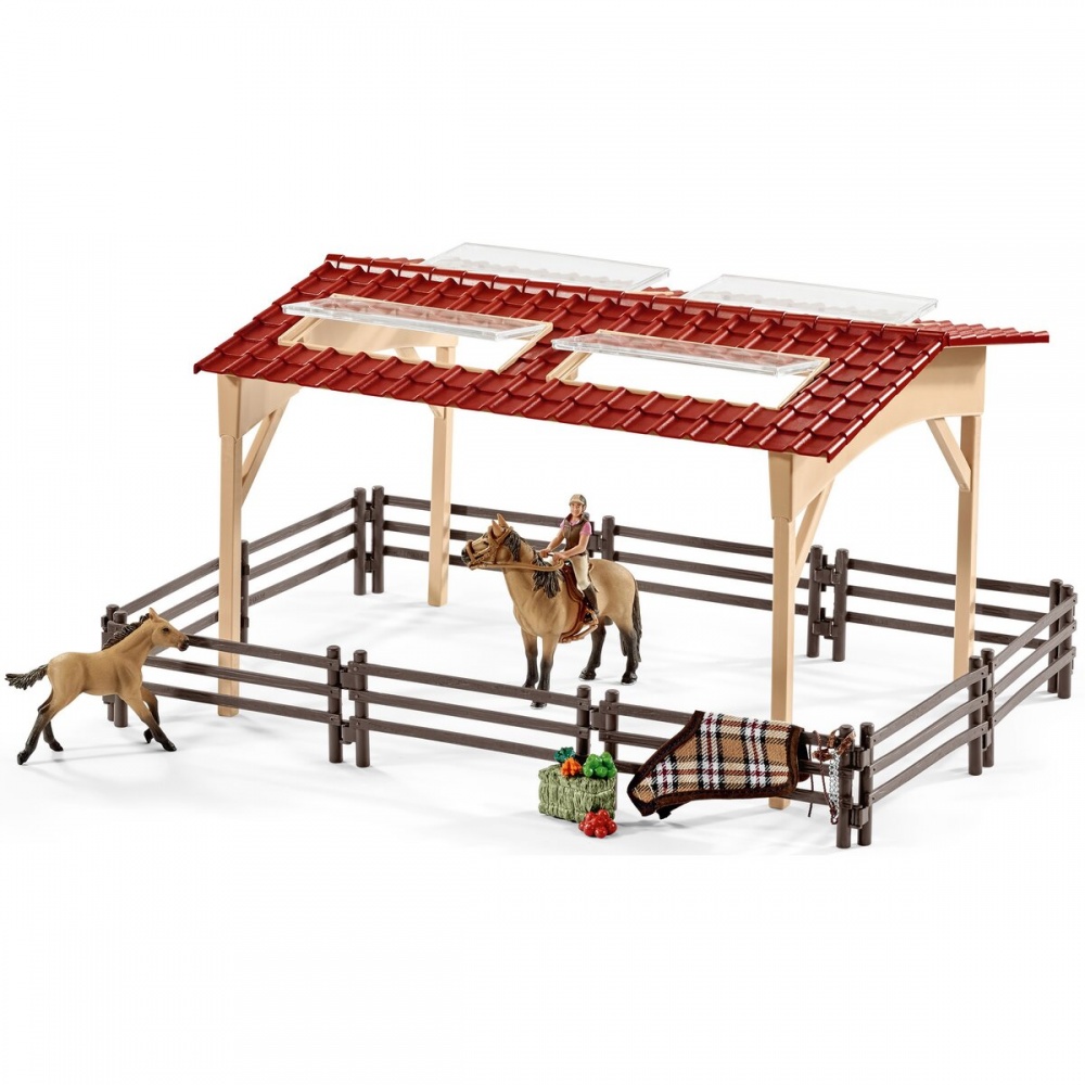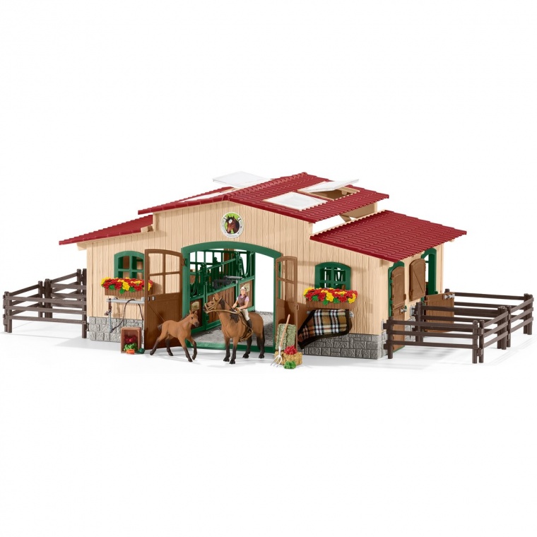 Сара щойно повернулася з поїздки з Майєю, кобилою породи Мустанг. Вона перевірила своє нове сідло і воно підходить просто ідеально! Зараз Сара помиє і розчеше свого коханого коня, а потім дасть їй свіжий корм і сіно, щоб Майя відновила сили після поїздки. Потім Сара перевірить як поживає маленьке лоша, яке залишилося в стайні один, поки вони з Майєю їздили околицями. Велика стайня з кіньми та аксесуарами в повному порядку і Сара може спокійно йти додому, щоб трохи відпочити.