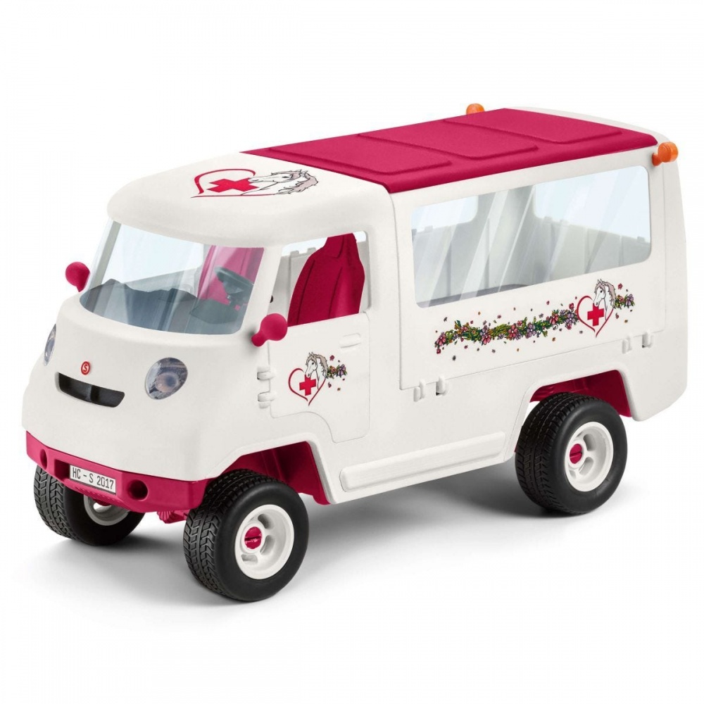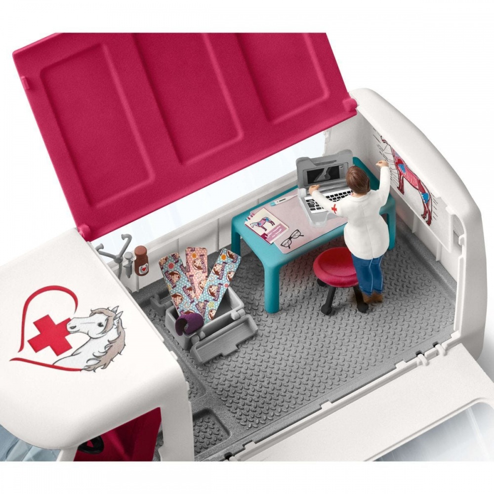 1x автомобіль, 1x ветеринар, 1x ганноверське лоша, 1x набір лікаря, 1x стетоскоп, 1x шприц, 1x пляшка з ліками, 1x ноутбук, 1x рентгенівський апарат, 1x лейкопластир, фіолетовий, 1x зелений,1 , 1 блокнот з рецептами, 1 лист з наклейками для бинтів, 2 листи з наклейками, 1 стайня, 2 прапори, 1 чистокровна англійська кобила, 1 ісландська кобила, 1 лоша ісландського коня, 1 вершник на поні, 4 загони, 3 , 2 сухожилля чоботи, 2 недоуздка, 1 сідло для поні, 1 вуздечка, 1 інструкція зі збирання