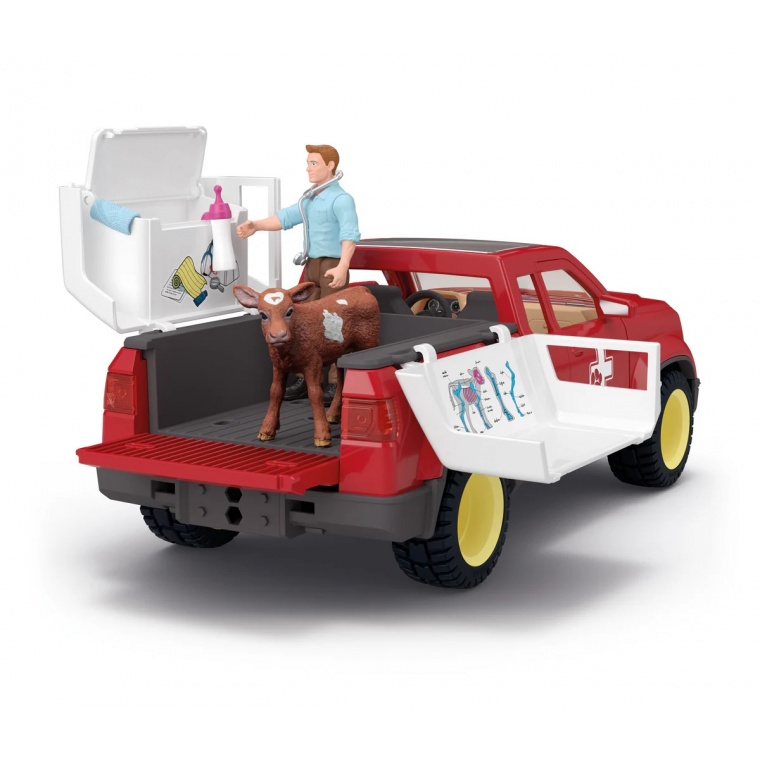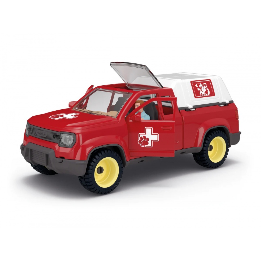 Розміри: 32 x 24.5 x 10 см. Новинка 2025. Вміст: 1 пікап, 1 фігурка фермера Пола, 1 теля породи техаський лонгхорн, 1 пляшка, 1 стетоскоп, 1 перев'язувальний матеріал, 1 лист наклейок, 1 комплект інструкцій. Боже, на фермі ветеринар! Схоже, маленьке теля техаського лонгхорна постраждав. Фермер Пол не вагаючись їде на своєму великому пікапа на пасовищі. Діставшись місця, він за кілька простих кроків готує вантажний майданчик і тепер може подбати про теля. Він дістає стетоскоп із контейнера. Серцебиття трохи частішає. Оце так, хвилювання. Потім він обережно обмацує ногу. Він акуратно перев'язує теля. Щоб заспокоїти малюка, він годує його молоком із пляшечки. Скоро він повністю видужає.