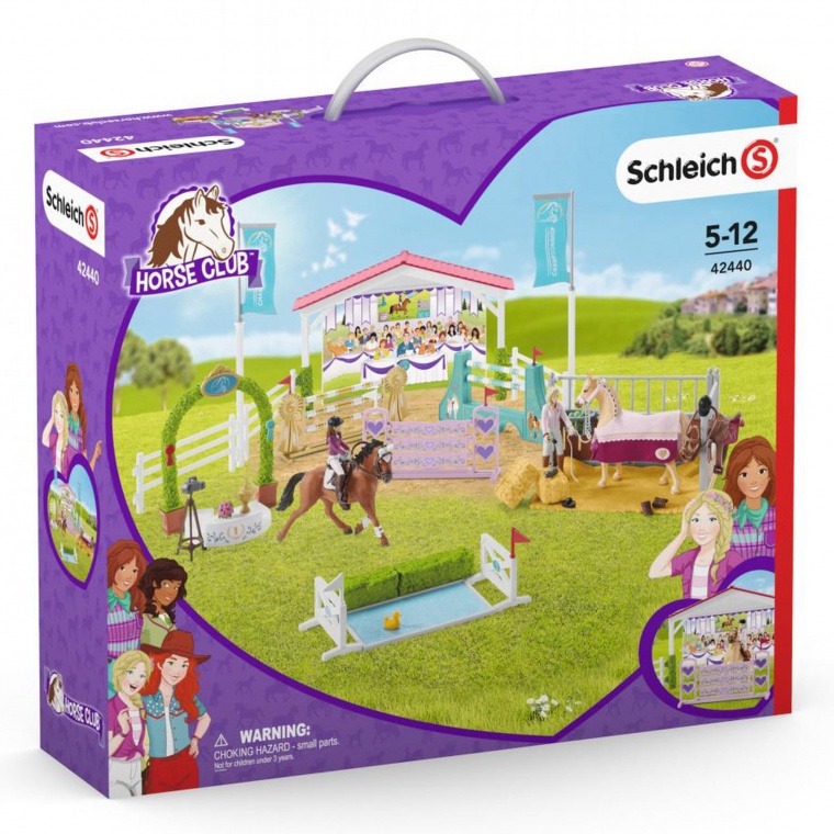 У набір входять: 1x трибуна, 1x денник, 2x дівчина, 1x тракененська кобила, 1x арабська кобила, 1x миша, 4x паркан, 2x вуздечка з поводами, 2x сідло, 1x канава з водою, 2x прапор, 1x горщик , 2x тюк соломи, 1x подіум для церемонії нагородження переможців, 1x серце для висотної перешкоди, 1x золота висотна перешкода, 1x камера зі штативом, 1x горобина, 1x яблуко, 1x букет квітів, 1x щітка, 2x ш стрічка переможця, 2x браслет