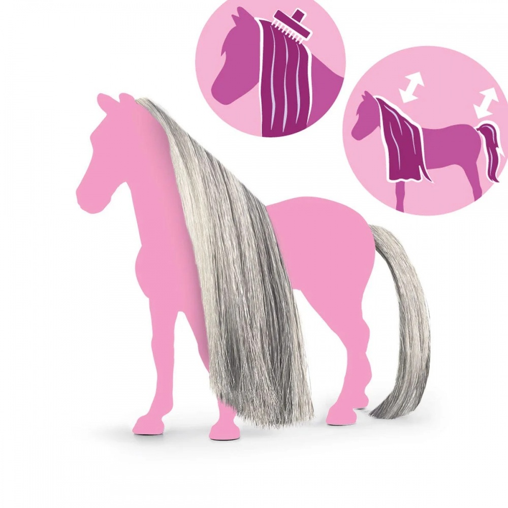 З гарними конями від Schleich® не буває поганих днів із волоссям. У всіх них гарні блискучі гриви та густі хвости. І найкраще: обидва варіанти взаємозамінні. На вибір пропонується безліч різних кольорів волосся. Зробити вибір серед такої різноманітності непросто. Однак усі накладки ідеально підходять для укладання та плетіння. Найкраще спробувати прямо зараз! Додаткові набори волосся підходять для коней Schleich® Beauty Horses. Тому що у цих коней змінні гриви, а хвіст також можна знімати та міняти. Їх усіх поєднує те, що вони гарно блищать і дуже пишні. Вам просто потрібно заплести чудові зачіски!