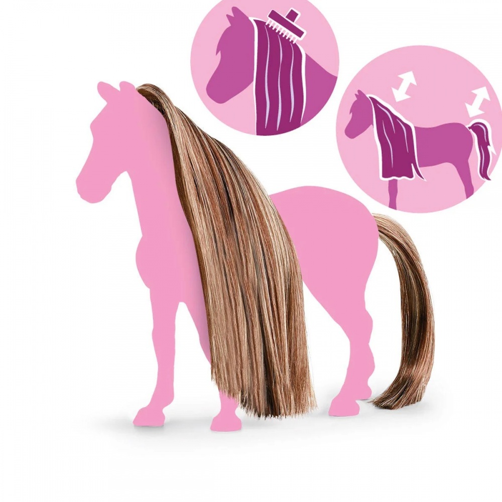 З гарними конями від Schleich® не буває поганих днів із волоссям. У всіх них гарні блискучі гриви та густі хвости. І найкраще: обидва варіанти взаємозамінні. На вибір пропонується безліч різних кольорів волосся. Зробити вибір серед такої різноманітності непросто. Однак усі накладки ідеально підходять для укладання та плетіння. Найкраще спробувати прямо зараз! Додаткові набори волосся підходять для коней Schleich® Beauty Horses. Тому що у цих коней змінні гриви, а хвіст також можна знімати та міняти. Їх усіх поєднує те, що вони гарно блищать і дуже пишні. Вам просто потрібно заплести чудові зачіски!
