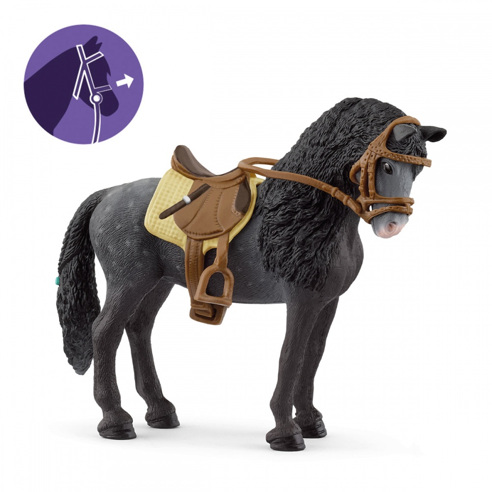 Кобила Пура Раза Еспаньола зі світу Schleich® Horse Club зачаровує своєю довгою гривою, що розвівається, яка дуже типова для цієї породи коней. андалузькі породи. З 1912 року вони визнані іспанською. об'єднанням тваринників незалежною породою Отже можна сказати: все PRE — андалузці, але не всі андалузці — PRE.
