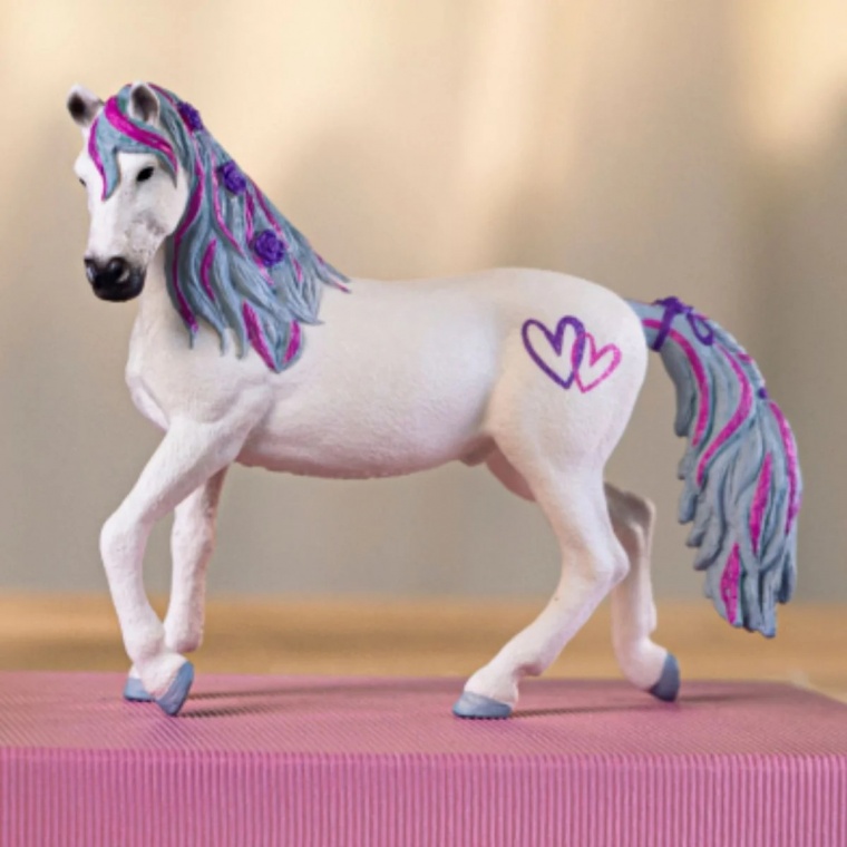 Розміри: 15 х 11 см. В ексклюзивному забарвленні. Жеребець породи пасо фіно входить до колекції LOVE Edition від schleich®. Фігурка розписана з любов'ю та прикрашена сердечками на боці. Це робить колекційну фігурку ідеальним подарунком для ваших близьких. Цей чудовий талісман ідеально підходить для Дня матері або Дня святого Валентина, він поширює радість та любов.