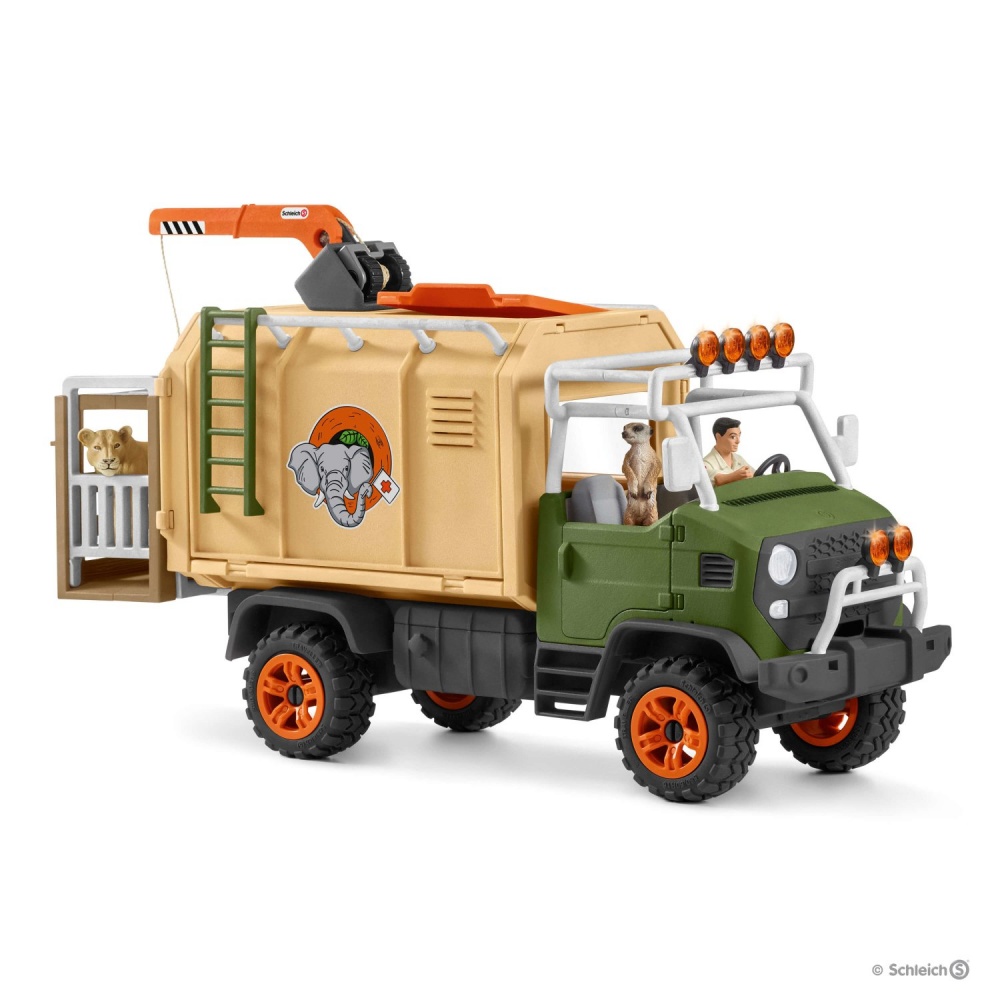 Рейнджер Том та його друг сурикат Тед знаходяться у ветеринарному фургоні Schleich® Wild Life на шляху до своєї першої спільної місії. На сафарі Том і Тед знайшли левицю, якій терміново має бути надано медичну допомогу у фургоні.