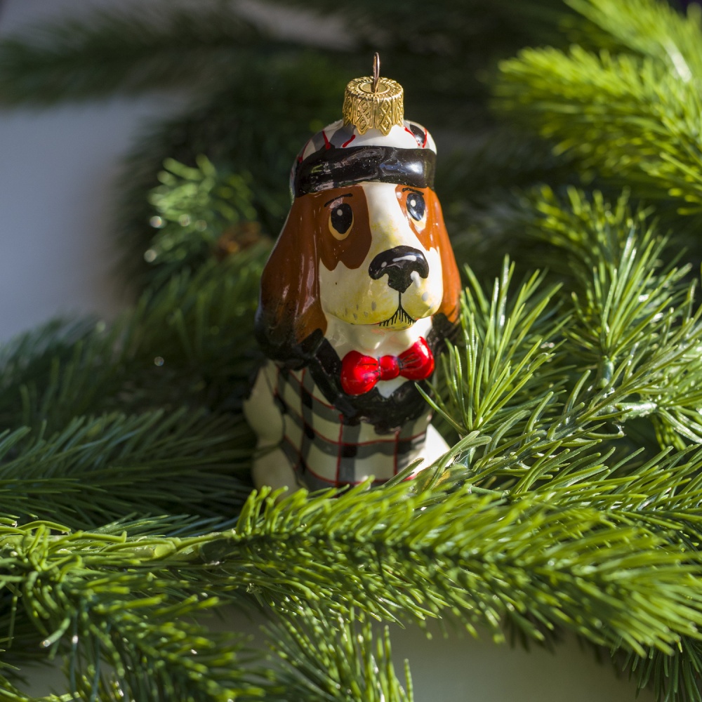 • ялинкова іграшка бассет у кепці 11 см. скло 325 грн